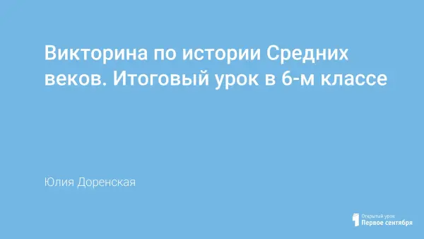 Предлагается разработка заключительного обобщающего урока по истории Средних веков в форме викторины. Викторина развивает у учащихся фантазию, удовлетворяет жажду практической деятельности, помогает расширить круг исторических представлений и лучше понять историческую эпоху Средневековья. С этой целью предлагается ряд творческих заданий: