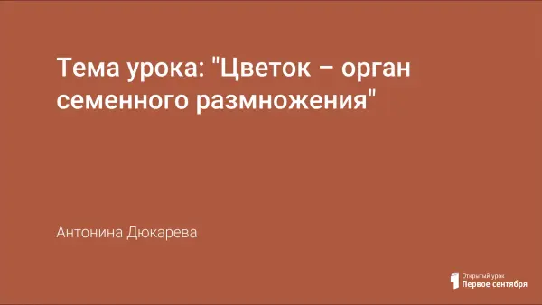 Урок "Цветок – орган семенного размножения" позволяет познакомить обучающихся со способами опыления, с процессом двойного оплодотворения и образованием плодов и семян у цветковых растений; развить умение устанавливать причинно-следственные связи, сравнивать, обобщать; способствует развитию интереса к предмету, расширяет кругозор, воспитывает бережное отношение к природе.