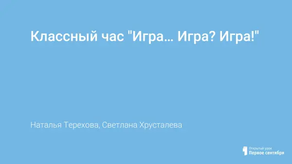 Классный час "Игра… Игра? Игра!"