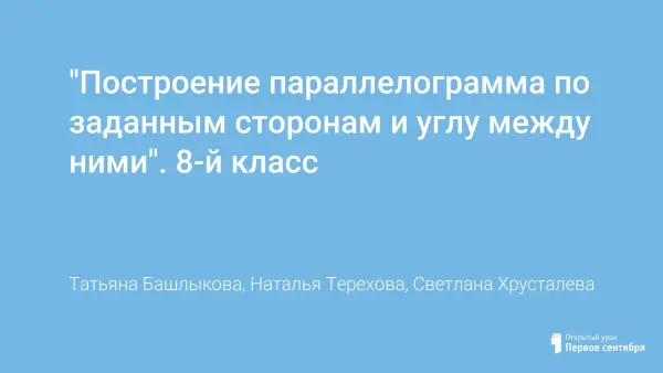 "Построение параллелограмма по заданным сторонам и углу между ними". 8-й класс