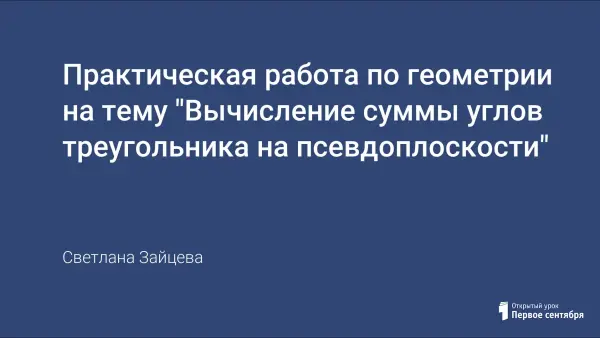 В данной статье представлен пример практической работы по геометрии для учащихся 7-х классов по теме «Сумма углов треугольника на псевдоплоскостях».