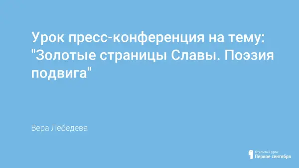 Урок – пресс-конференция предполагает за два учебных урока познакомить ребят с творчеством многих поэтов, пишущих на войне и о войне, выяснить причину постоянного внимания современных авторов к событиям Великой Отечественной войны. Также тема и форма урока дают возможность приобщать учащихся к творчеству своих земляков.