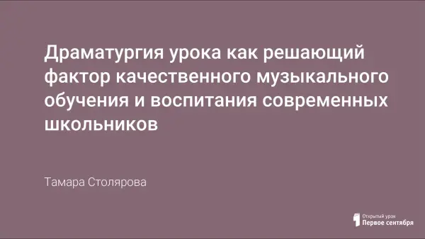 Модернизация российского образования коснулась и предметов эстетического цикла, в частности образования музыкального. В статье рассматриваются модели уроков, драматургическое решение которых сводится к названию самих уроков. Они выходят за рамки прикладной предметной методики и составляют педагогическую технику, опирающуюся на культуру действий и взаимодействий. Разнообразие видов деятельности способствует гармоническому развитию ребёнка, стимулируя позитивную и творческую активность.
