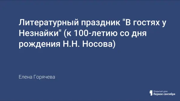 Литературный праздник, посвященный 100-летию со дня рождения Н.Н. Носова, представляет собой конкурсную программу, на которой ребята учатся работать в команде, демонстрируют свои знания книги «Приключения Незнайки и его друзей». В течение всего мероприятия ребята показывают заранее подготовленные сценки из сказочной повести.