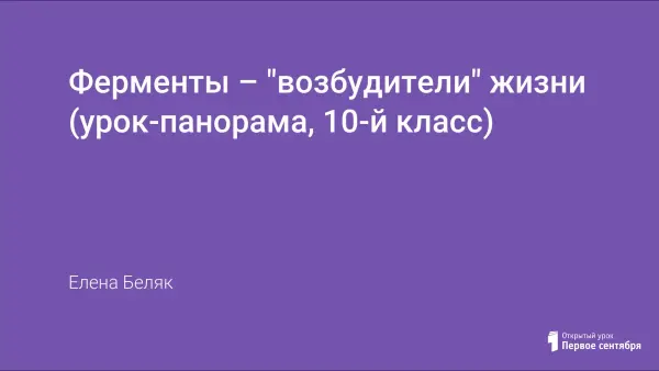 Урок-панорама "Ферменты – "возбудители" жизни" разработан для учащихся 10-го класса, изучающих химию в общеобразовательных классах, или классах с углубленным изучением предмета. Предварительная постановка химического эксперимента во время факультативных занятий дает большую экономию времени на уроке, позволяет шире рассмотреть данный класс биологически активных соединений.