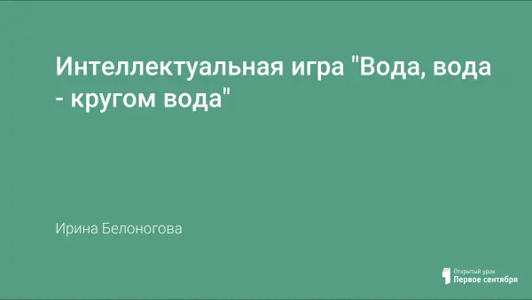 Предлагаемый материал можно использовать при проведении Дня воды, в рамках проведения предметной недели "Экология", а также на уроках экологии. Конкурсные задания составлены таким образом, чтобы они охватывали широкий круг знаний, связанных с водой. Учащиеся заранее оформляют тематические стенды, готовят экспонаты для выставки рисунков, плакатов, рефератов.