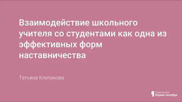В статье раскрывается роль школьного учителя-наставника в организации педагогической практики студентов, в которой неотъемлемой частью является совместное плодотворное взаимодействие между школой и педагогическими учреждениями профессиональной направленности.