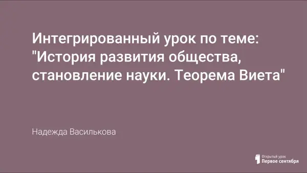 Предлагаю интегрированный урок математики по теме "Теорема Виета" в сочетании с историческими экскурсами в жестокую эпоху инквизиции, благодаря которым осуществляется переход к системному обобщению связи истории развития общества и истории развития математики.