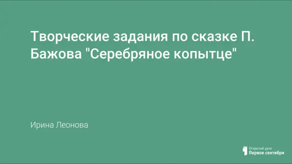 Творческие задания по сказке П. Бажова "Серебряное копытце" вызывают большой интерес у детей. Эту работу целесообразно проводить на уроках литературного чтения или во внеурочной деятельности после прочтения сказки.