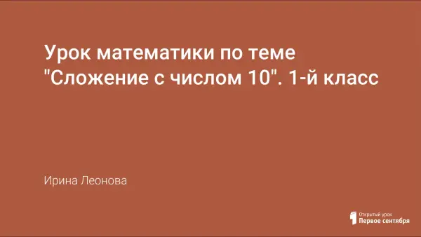 На уроке отрабатывается состав и сложение числа 10. Проведена фронтальная, парная, групповая работа при разборе задачи, самопроверка. Все этапы урока сопровождаются наглядным материалом. В конце урока учащиеся оценивают свою работу и работу других детей.
