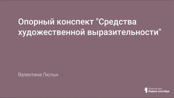 Цель методического пособия: структурирование и систематизация методических материалов, содержащих информацию о средствах художественной выразительности; качественная подготовка учащихся к выполнению заданий на определение средств художественной выразительности. Предлагаемый опорный конспект включает в себя характеристику средств выразительности с примерами.