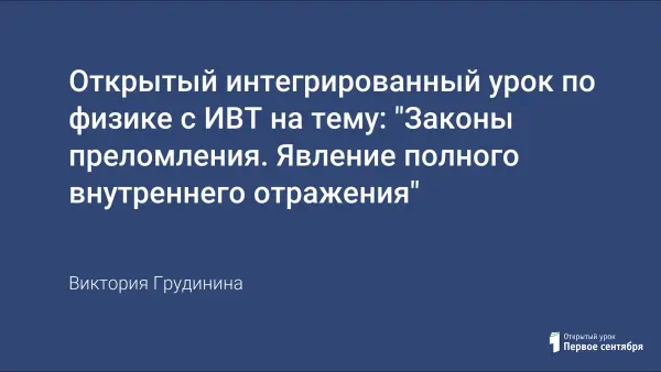 Цель урока – изучить закон отражения с привлечением принципа Гюйгенса на основании исходного положения "Свет – электромагнитная волна". Физический смысл показателя преломления среды. Явление полного внутреннего отражения, его техническое применение. Пример решения задачи. При проведении урока рекомендуется использовать мультимедийные устройства проекционного изображения и звука и персональные компьютеры.