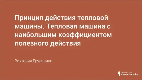 Комбинированный урок с использованием компьютерных технологий с целью показать важность применения тепловой машины в жизни человека. На уроке изучается принцип работы реальных тепловых двигателей и идеального двигателя, работающего по циклу Карно, рассматриваются возможные пути повышения КПД реального двигателя, развивая у учащихся любознательность, интерес к техническому творчеству, уважение к научным достижениям ученых и инженеров.