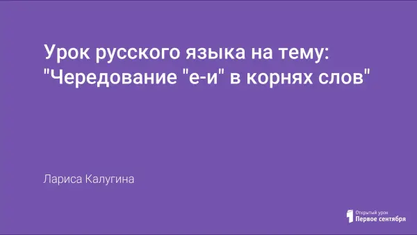 Представленный урок по теме "Чередование е-и в корнях слов" предназначен для учащихся 5-х классов, занимающихся по учебно-методическому комплексу под редакцией М.М. Разумовской. Основная цель, преследуемая учителем, – вырабатывание навыка выбора нужной буквы в чередующихся корнях слов. Для этого выбран метод проекта (на первом этапе с помощью решения учебной задачи учащиеся проектируют тему и цели данного урока). По ходу урока берутся во внимание возрастные и индивидуальные особенности учеников, используются разноуровневые карточки и включаются элементы игры (ученики работают с сигнальными ракетами и развивают логическое мышление, разгадывая кроссворды). Весь урок должен проходить с четким распределением времени на каждый этап (это нужно для достижения учебной цели). Интерес к уроку поддерживается творческими работами учащихся (сказки о чередовании гласных). На всех этапах присутствует орфографическое письмо (выполнение упражнений учебника, объяснительно-орфографический диктант, индивидуальная работа по карточкам). Итогом урока может быть контрольная работа, подтверждающая усвоение материала.