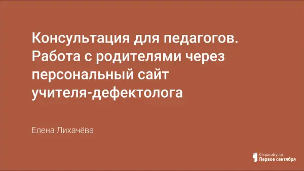 В статье рассматривается одно из направлений работы учителя-дефектолога с родителями через персональный сайт педагога в сети Интернет, который предоставляет родителям возможность оперативного получения информации о жизни группы, проводимых мероприятиях, новостях, получать различные консультации, помощь к выполнению тренировочных упражнений.