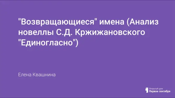 В статье предлагаются материалы к уроку по анализу новеллы С.Д. Кржижановского «Единогласно». (Текс новеллы включен в статью.) Материалы могут быть использованы при подготовке учащихся к Единому государственному экзамену (часть С) или при изучении литературного процесса ХХ века.