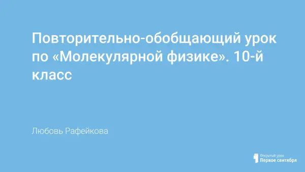Цель урока: создать условия для осознания, осмысления изученного материала по теме «Молекулярная физика», с учетом особенностей обучающихся.