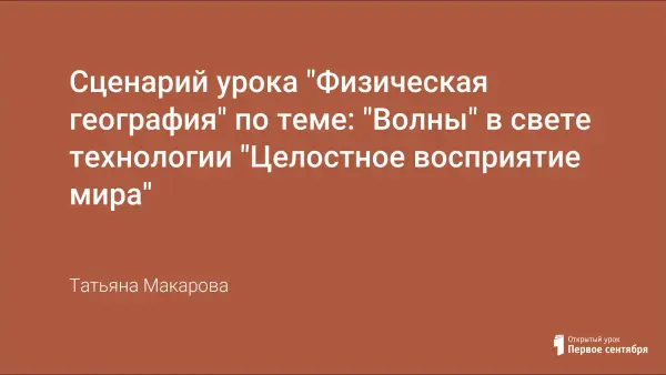 Урок географии в 6-м классе по теме "Ветровые волны" решает следующие задачи: расширить понятие "гидросфера", сформировать понятие о ветровых волнах и их строении, причине возникновения, различиях по силе и т.д., формировать диалектико-материалистическое мировоззрение учащихся.