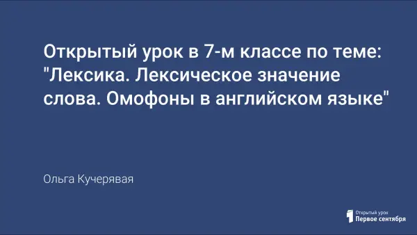 Открытый урок в 7-м классе знакомит учащихся с понятием "Омофоны" в английском языке.