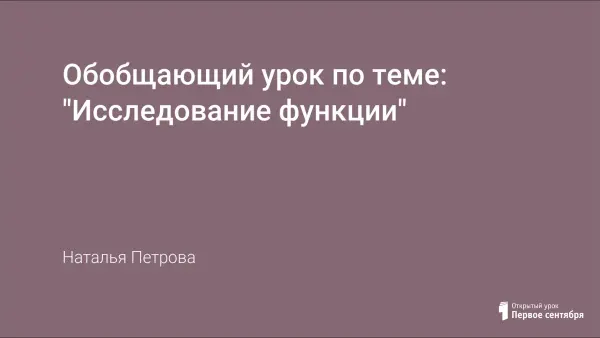 Один из завершающих уроков в теме "Исследование функции". Он позволяет ребятам закрепить навыки исследования функции, выявить, полностью или частично устранить возникающие вопросы и определить дальнейший путь развития. Отбор содержания осуществлен в соответствии с целью урока и основной идеей педагогического опыта: формирование и развитие творческой, активной личности.