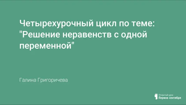 Предлагаю четырехурочный цикл по теме "Решение неравенств первой степени с одной переменной" (по учебнику Ю.Н. Макарычева, Н.Г. Миндюка и др. "Алгебра. 8-й класс"), в котором представлены различные типы уроков: урок изучения нового материала, урок-практикум, урок общения, урок самостоятельной работы.