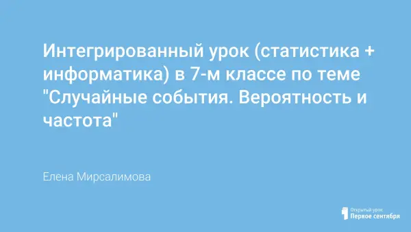 В статье представлен урок статистики и ТВ в 7-м классе, интегрированный с информатикой. Проиллюстрирован презентацией.