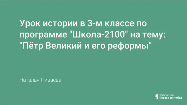 Урок истории в 3-м классе начальной школы. Урок знакомит учеников с петровскими реформами, показывает, в результате чего произошла смена эпох.
