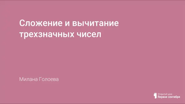Цели урока: сформировать умение складывать и вычитать трёхзначные числа без перехода через разряд, записывать операции сложения и вычитания без перехода через разряд столбиком; тренировать умения анализировать и решать задачи на нахождение части, решать уравнения.