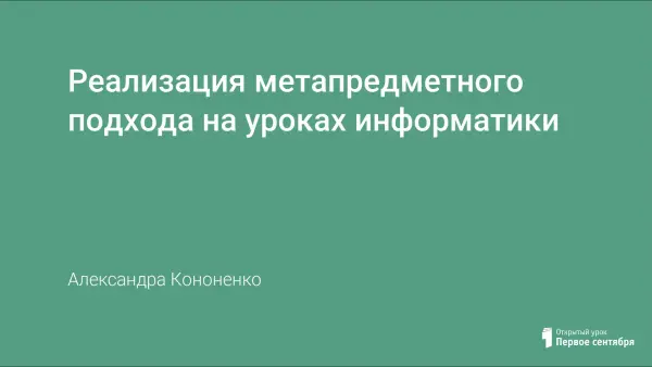 В работе речь идет о реализации метапредметного подхода на уроках информатики. Приводятся примеры из различных предметных областей, варианты межпредметных связей, темы метапредметных проектов, раскрывается идея метапредметности в различных тематических блоках информатики.