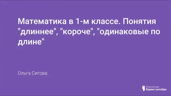На уроке учащиеся первого класса осваивают способы сравнения длин предметов. Формируется компетенция оценки предметов на глаз; формируются компетенции решения задач, связанных с жизненной ситуацией, и сравнения длин предметов разной длины.