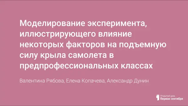 Моделирование эксперимента, иллюстрирующего влияние некоторых факторов на подъемную силу крыла самолета в предпрофессиональных классах