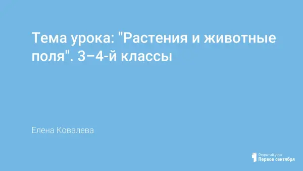 Данный открытый урок по теме "Растения и животные поля" – один из серии уроков темы "Природные сообщества", он способствует не только усвоению учебных навыков по природоведению. Основная цель этого урока, да и всей серии уроков, – научить детей конспектировать свои знания. Учащиеся по ходу урока заносят новые термины в схему-опору, новый материал конспектируется и выглядит к концу урока как таблица. Эта таблица поможет учащимся воспроизвести этот материал дома и подготовиться к следующему уроку. На этом уроке показана вся система работы со схемой-опорой.