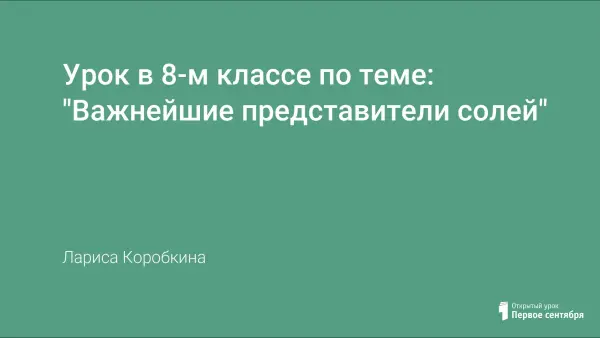 Урок химии в 8-м классе по теме "Важнейшие представители солей" проводится как второй урок в теме "Соединения химических элементов". Целью данного урока является познакомить обучающихся с важнейшими представителями класса солей: хлоридом натрия NaCl, карбонатом кальция CaCO3, фосфатом кальция Ca3(PO4)2.