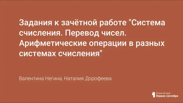 Задания к зачётной работе "Система счисления. Перевод чисел. Арифметические операции в разных системах счисления"