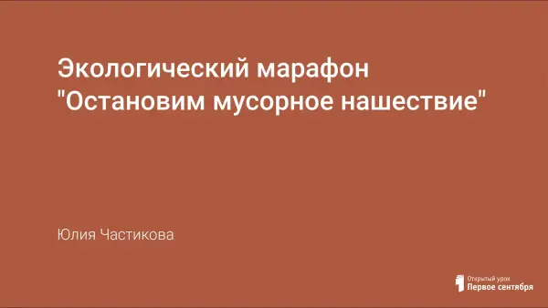 В апреле 2006 года в нашей школе проходила Неделя технологии. В рамках проведения этой Недели был проведен Экологический марафон. В нем участвовали учащиеся 5–7-х классов. Программа Марафона была рассчитана на весь учебный день. Завершающим этапом Марафона стало итоговое мероприятие, сценарий проведения которого я предлагаю вашему вниманию.