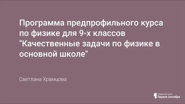 Основная задача предметных курсов - обеспечить глубину и прочность базовых знаний учащихся по основам наук. В данной программе предлагается один из вариантов организации предметного курса по решению качественных задач. Качественные задачи по физике создают условия для углубления и закрепления знаний учащихся; повышения интереса учащихся к физике; активизации восприятия ими материала; проверки знаний и практических навыков учащихся.