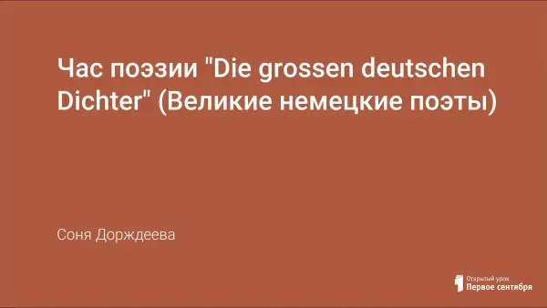 Особую роль играют внеклассные мероприятия, посвященные великим людям стран изучаемого языка. Жизнь и творчество Гёте, Гейне и Шиллера – пример нравственного подвига. Участие детей в таких мероприятиях способствует раскрепощению и развитию личности школьника, особую роль в постижении образного строя поэтического произведения играет сравнение подлинника с его переводами на родной язык, выполненными русскими поэтами. Полезно и интересно также сравнение переводов одного и того же стихотворения, принадлежащих разным авторам.