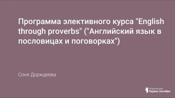 Программа элективного курса "English through proverbs" рассчитана на учащихся 9-го класса,