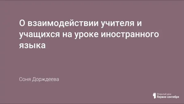 В наши дни процесс обучения иностранному языку понимается не как индивидуальная деятельность учащегося с учебным материалом, а как «особым образом организованное общение или особая разновидность общения». Важной функцией такого общения на уроке является установление взаимодействия учеников и учителя друг с другом, в ходе которого реализуется задача присвоения школьником речевого опыта на новом для них языке.