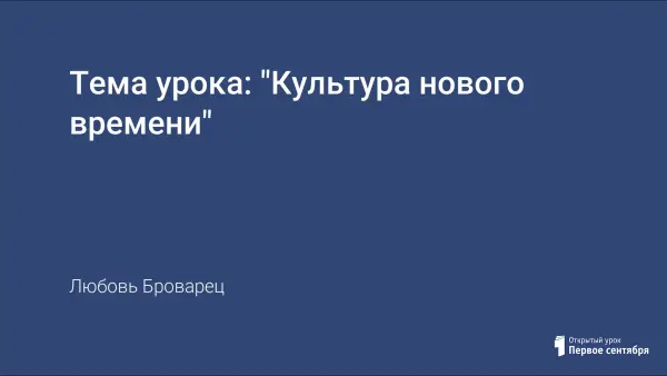 Тема урока: "Культура нового времени"