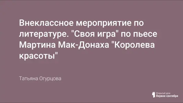 Урок изучения современной зарубежной драматургии – пьесы Мартина Мак-Донаха "Королева красоты" – построен в форме телеизионной викторины "Своя игра".