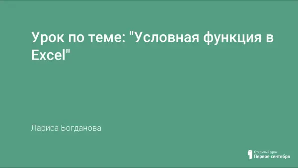 Комбинированный урок по теме "Условная функция в Excel". Это 11-й урок в теме "Табличный процессор Microsoft Excel". К этому времени учащиеся обладают необходимыми знаниями и умениями. Цель урока – познакомить учащихся с условной функцией и научить использовать ее на репродуктивном уровне.