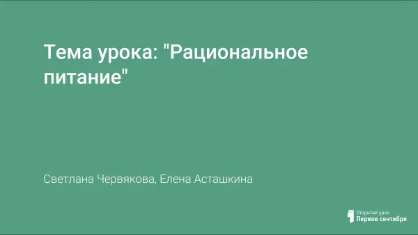 На уроке учащиеся знакомятся со значением белков, углеводов, жиров, витаминов, микроэлементов в питании человека, с особенностями химического строения питательных веществ и значением режима питания для жизни.