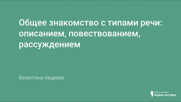 Материал урока знакомит учащихся с созданием трех типов речи: описанием, повествованием, рассуждением. На уроке в доступной форме даются определения этих типов речи.