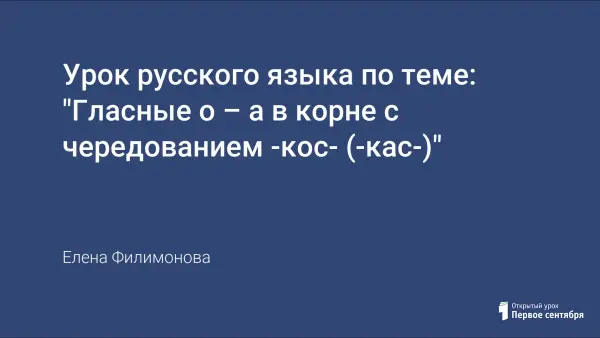 Урок русского языка (6-й класс) по теме "Гласные а – о в корнях -кос- (-кас-)" составлен в рамках реализации индивидуально ориентированной системы обучения. Представленный материал подобран с учетом индивидуальных особенностей учащихся, трехуровневой закономерности при организации учебного занятия и направлен на развитее самостоятельности, логического мышления, творческих способностей детей.