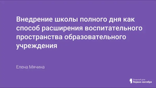 Школа, которая работает в режиме полного дня, становится особым социокультурным пространством, "общим местом" жизнедеятельности детей и взрослых, в котором образовательная и воспитательная среда оказывается более комфортной и безопасной, чем за ее границами.