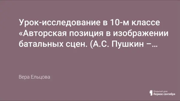 На уроке литературы в 10-м классе проводится сопоставительный анализ стихотворения М.Ю. Лермонтова "Бородино" и поэмы А.С. Пушкина "Полтава". Рассматриваются принципы изображения войны у Л.Н. Толстого.