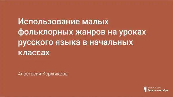 В результате активного использования малых фольклорных жанров повышаются воспитательные и познавательные возможности детей; дети учатся говорить более выразительно, глубже выражать свою мысль, что отражается на других уроках; занимательные задания способствуют развитию логики мышления, пространственных представлений, воображения и воли детей, расширению их кругозора и общей осведомленности об окружающем мире; улучшается артикуляция, вырабатывается хорошая дикция.
