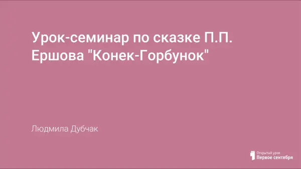 Урок-семинар по сказке П.П. Ершова "Конек-Горбунок" расширяет знания учащихся об авторе, о сказке; помогает детям выяснить, почему сказку "Конек-Горбунок" по праву можно называть русской народной сказкой, и сделать вывод о том, чему учит эта сказка.