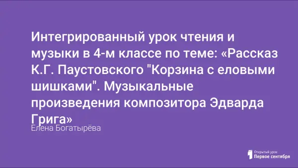 "Наполним музыкой сердца, устроим праздники из буден" – таков девиз обобщающего урока по рассказу К.Г. Паустовского "Корзина с еловыми шишками". Урок направлен на развитие творческого воображения учащихся через слово и музыку.